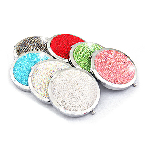 Yuvarlak Vintage el makyaj makyaj masası aynası küçük zarif çift taraflı cep seyahat Bling ayna bayanlar için